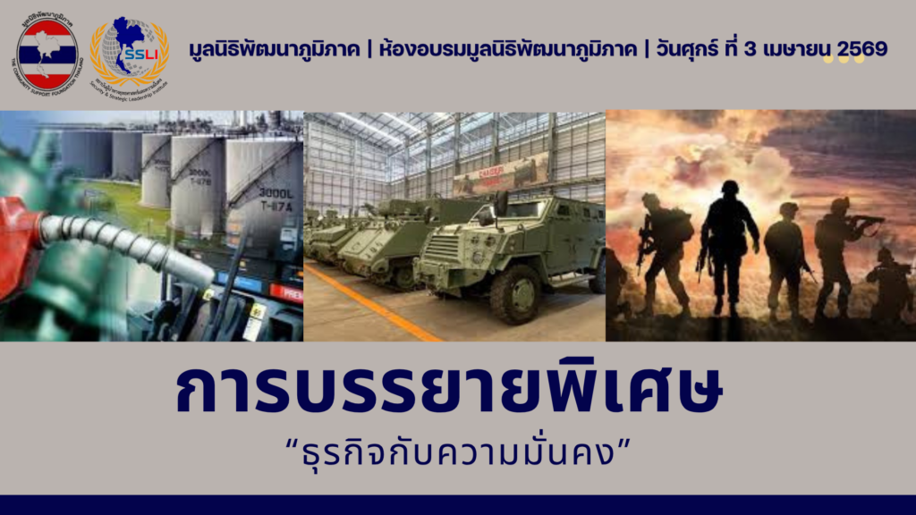 มูลนิธิพัฒนาภูมิภาค ได้จัดกิจกรรมการบรรยายพิเศษ “ธุรกิจกับความมั่นคง” ในวันที่ 3 เมษายน 2569 ที่ผ่านมา โดยได้รับเกียรติจากวิทยากรผู้ทรงคุณวุฒิทั้ง 3 ท่าน