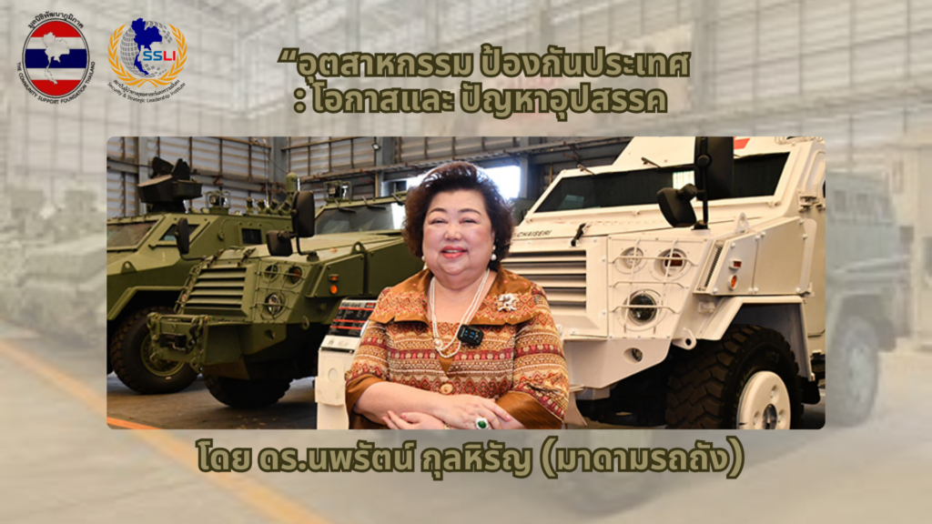 ดร.นพรัตน์ กุลหิรัญ (มาดามรถถัง) ผู้ก่อตั้งบริษัท ชัยเสรีเม็ททอลแอนด์รับเบอร์ จำกัด บรรยายในหัวข้อ “อุตสาหกรรม ป้องกันประเทศ : โอกาสและปัญหาอุปสรรค”